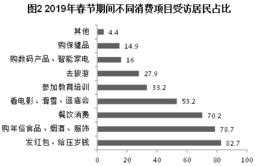 128.2019年春节期间消费支出在2000元以下的受访居民中,“发红包、给压岁钱的”至少占